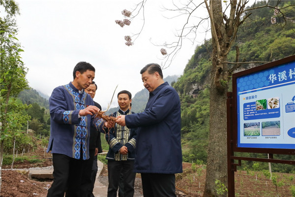 4月15日至17日,中共中央總書記、國家主席、中央軍委主席習(xí)近平在重慶考察,并主持召開解決“兩不愁三保障”突出問題座談會。這是4月15日下午,習(xí)近平在石柱土家族自治縣中益鄉(xiāng)華溪村了解該村通過種植中藥材黃精等特色經(jīng)濟(jì)作物帶動村民脫貧的情況。新華社記者 鞠鵬 攝