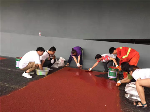 • 彩色防滑涂料施工一起來!全體總動員